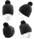 Pom Pom Plain Beanies are 100% knitted acrylic beanies and are available in black and navy. Tight knit, cuffed hem, longer body, mid-weight.