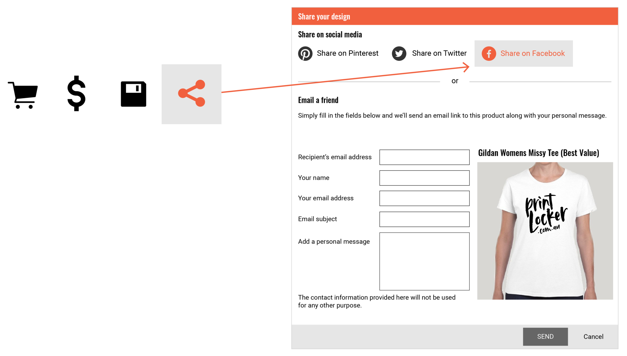 Click the Facebook share icon to post your design in your Facebook news feed.
